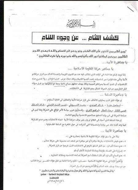 البيان ( كشف اللثام عن وجوه اللئام ) قالت حماس